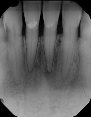 •    periapikalinę radiogramą (2 pav.) –  gali būti matomas dantų pūlinys, periodonto patologija;